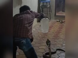 फन फैलाए घर में बैठा था किंग कोबरा, कुछ ही देर में हो गया बेकाबू